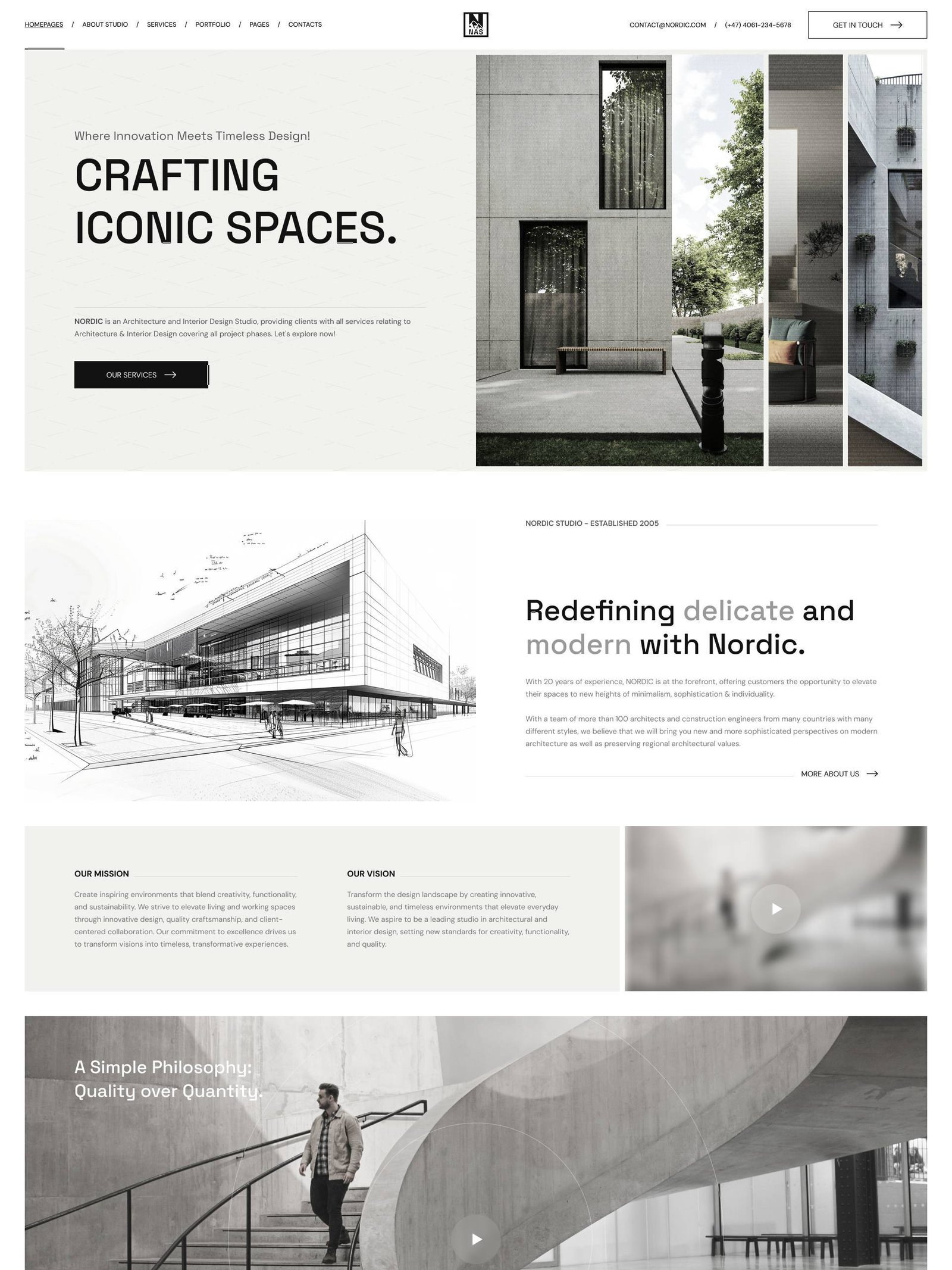Refined homepage designs to kickstart your site. One-click setup, fully flexible to mix and match — crafted for architecture and interior studios with a focus on aesthetics, usability, and modern layout standards